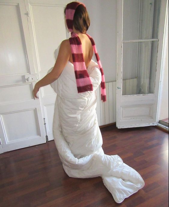 Nå som det er Desember imorgen wtf, og VIRKELIG begynner å bli kaldt (hvertfall i Sandnes) så frister det ikke så mye å gå ut. Og spesielt når vinterkulden kommer, kan det være utfordrende å holde seg oppdatert med moteverdenen, også samtidig kle seg varmt og komfortabelt. Det å velge antrekk som både reflekterer stilen din og beskytter mot kulden, er ikke alltid en enkel oppgave. Jeg er selv skyldig i å slenge på meg Pappas jobb boblejakke, joggebuksene i XXL fra Sparkjøp, og de stygge uggså mine mine fra 2017 når jeg kun skal dra en tur på matbutikken. Når det er kaldt ute vil man jo helst bare pakke seg inn i en dyne å bli der. Kanskje det er noe vi trenger? Bare lage en jakke eller kjole av en dyne??? Like this!