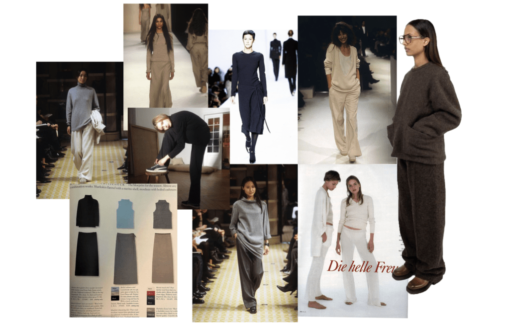Chic Loungewear: It’s giving Hermès Ready to Wear 1999/2000 av Martin Marigela! Dette gir kanskje ikke mening med mindre man har brukt usunt mange timer på Vogue Runway (sånn som meg, !guilty!) Hermès kolleksjonen fra denne tiden er nemlig kort oppsummert:, minimalistisk, komfortable «koseklær» men chic! Hvor blant annet SELVESTE Jane Birkin gikk den ene runwayen i en enkel krem hvit look. Kasjmir eller Merino Ull loungewear-sett fra f.eks. Arket, Arnie Says og COS (eller Hermès om man har råd til det hahaha) er en enkle, og komfortable look som gir 90s chic minimalistisk! Man ser bra ut og man er komfortable, det er best of both worlds assssaaa.