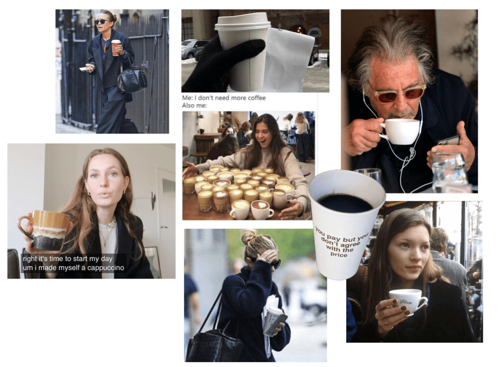 «Kaffe er dagens viktigste tilbehør»: WORD! Trenger jeg si mer? Føler man automatisk ser ut som en bossy lady når man går rundt med en latte (eller kakao for de som foretrekke det aka meg.)