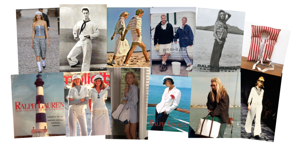 2024 er året vi bringer tilbake 80s Ralph Lauren sjømann mote. Stripene er tilbake, hvite skjorter og polos. Får lyst til å endre alle framtidsplanen min å flytte til Mandal, og bo i et sjøhus som har pynteputer med anker. On another note, matros antrekk er jo sykt classy med all white med marineblå detaljer. Høye bukser med gullknapper. Omg dette minner meg om favoritt buksene og shortsen min fra wow som jeg ødela, og hadde kjærlighetssorg over i flere måneder.