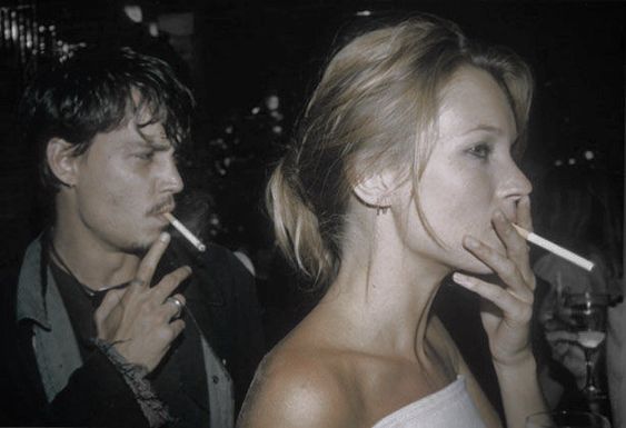 I 1994 møter Kate – Johnny Depp på en trendy 90-talls café kalt Café Tabac i New York City. Det var skribent George Wayne som introduserte dem. Han har fortalte på en tidligere insta post at han grabbet tak i Kate Moss når hun kom inn med Naomi Campbell, og Johnny satt bakerst i lokale og spiste middag: «Jeg ante ikke at de skulle bli det nye it-paret i årene som fulgte,» skriver han i innlegget. Til tross for 11 år aldersforskjell…