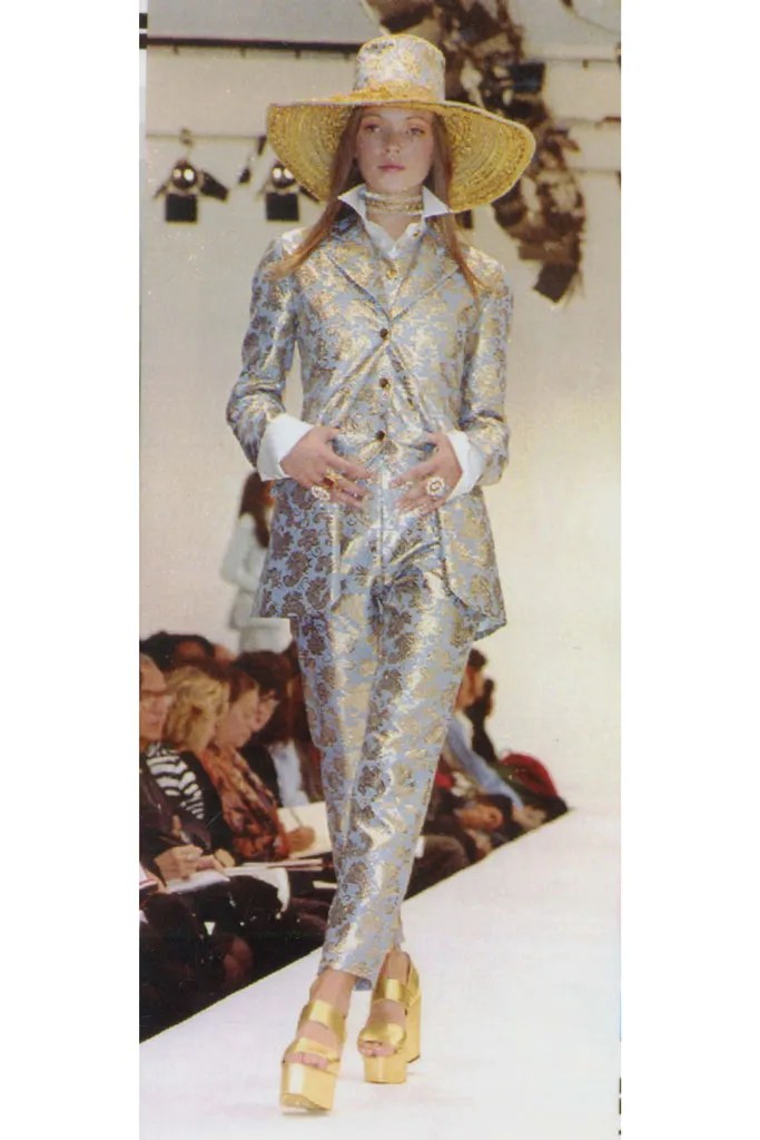 Kate Moss gjorde sin aller første runway debut med Dolce & Gabbana i deres Spring’92 kolleksjon i Milano. Hvor hun var ikledd baby blå gull brokade dress sett med matchende hatt sammen med høye gull sandaler. Og dette er bare 1 av flere hundre ikonisk looker Kate Moss har, det er umulig å velge hvilke jeg har lyst å skrive om fordi det er så mange!! På peaken av karrieren kunne hun gå opp til 6 show til dagen i mote ukene, INSANE. Sorry men nepo babies could never!!