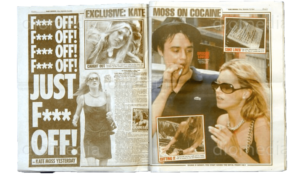 Britisk presse er jo en different type og paparazzien hadde insiders som kunne fortelle dem hvor Kate og Pete ville dukke opp. Dette er en av grunnen til at videoen og bildene av Kate havnet i media… 15 september 2005 ble dette leaket, dagen etter videoen var tatt. Videoen viser Kate Moss i studio med Pete, og hans andre drug venner. Hun har en liten blå bag med kokain som hun deler opp i linjer med et CD cover, og deler det ut til i alle i rommet inkludert seg selv. Åpenbart får hun ikke med seg at det blir filmet. Neste dag drar hun og Pete til New York, aner fred og ingen fare. Mens hun er på en photoshoot informer assistenten hennes om magasin coveret. «Fuck off, fuck off, fuck off, fuck off, just fuck off» sier hun til reporteren som følger etter henne når de forlater hotellet sitt i NYC.